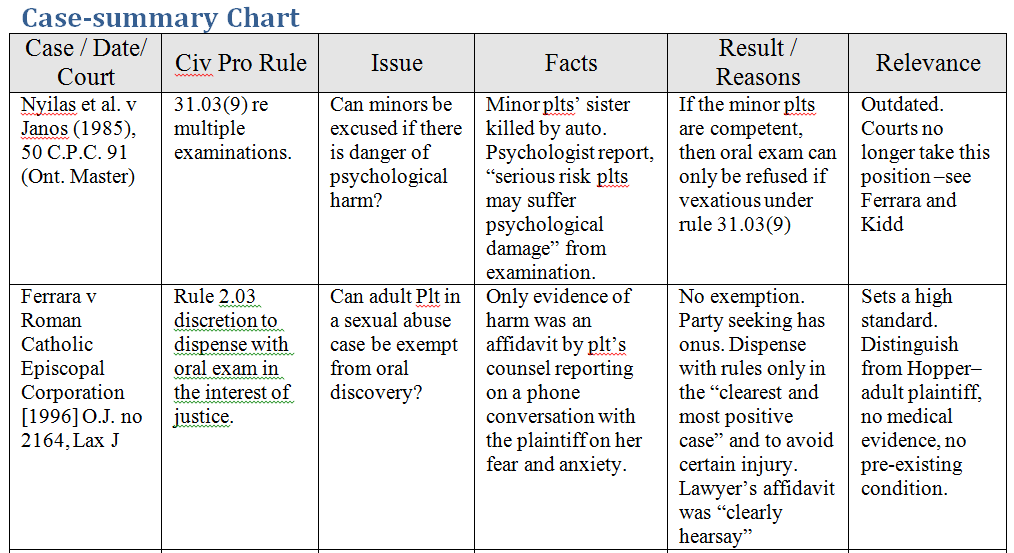 - identify legally relevant facts and describe them either chronologically or thematically